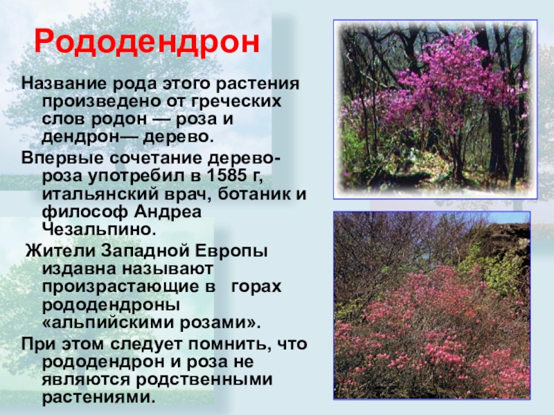 Жители Западной Европы издавна называют произрастающие в горах рододендроны «альпийскими розами».
