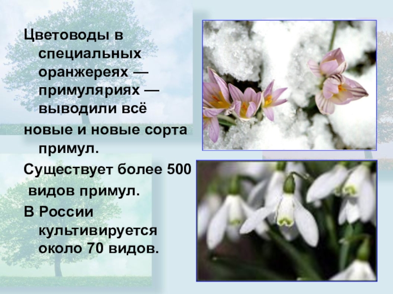 Слайд 3Цветоводы в специальных оранжереях — примуляриях — выводили всё