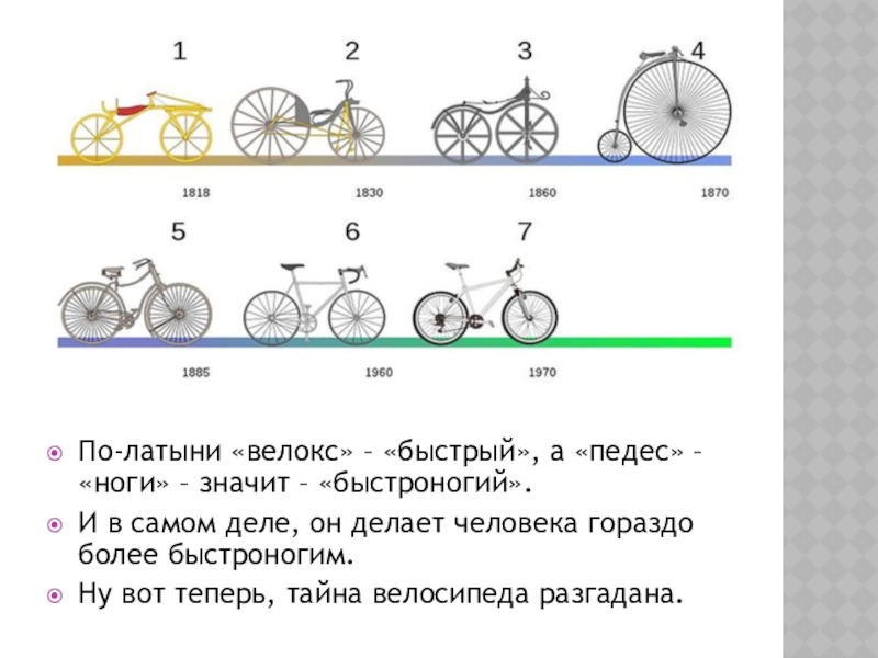 Слайд 8По-латыни «велокс» – «быстрый», а «педес» – «ноги» – значит –