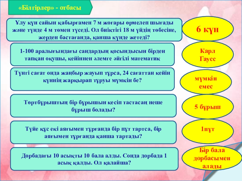 Дорбадағы 10 асықты 10 бала алды. Сонда дорбада 1 асық қалды. Ол қалайша?