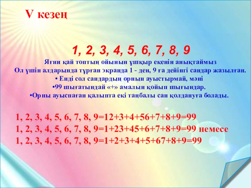 1, 2, 3, 4, 5, 6, 7, 8, 9=1+23+45+6+7+8+9=99 немесе