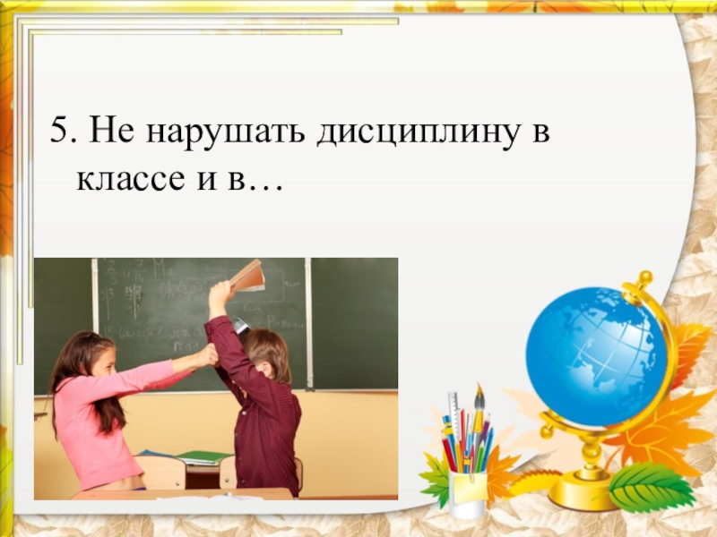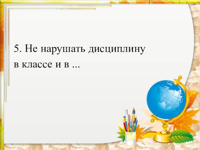 Слайд 85. Не нарушать дисциплину в классе и в…