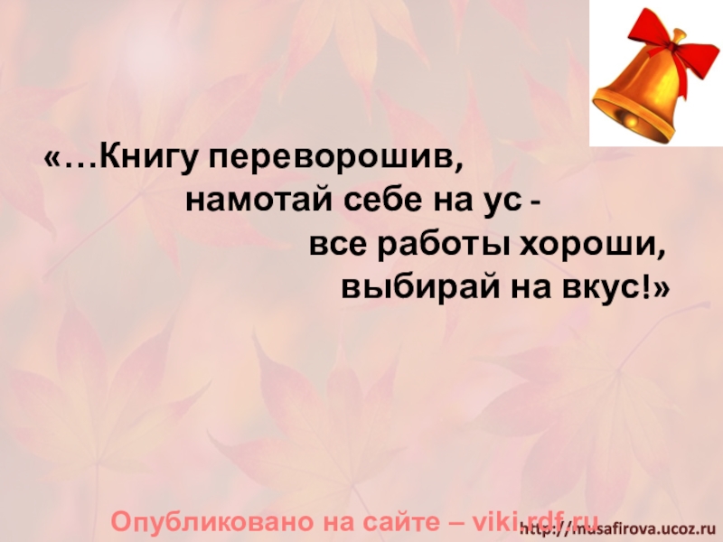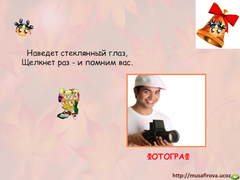 Это сайт презентаций, где можно хранить и обмениваться своими презентациями, докладами, проектами, шаблонами в формате PowerPoint с другими пользователями. Мы помогаем школьникам, студентам, учителям, преподавателям хранить и обмениваться учебными материалами.