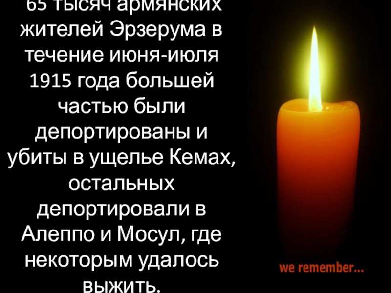 Слайд 13 65 тысяч армянских жителей Эрзерума в течение июня-июля 1915 года