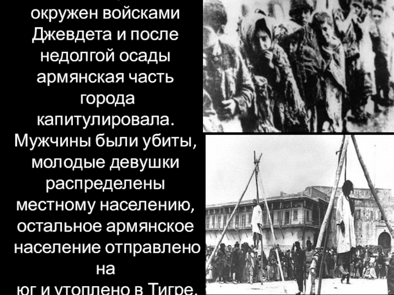 города капитулировала. Мужчины были убиты, молодые девушки распределены местному населению, остальное армянское