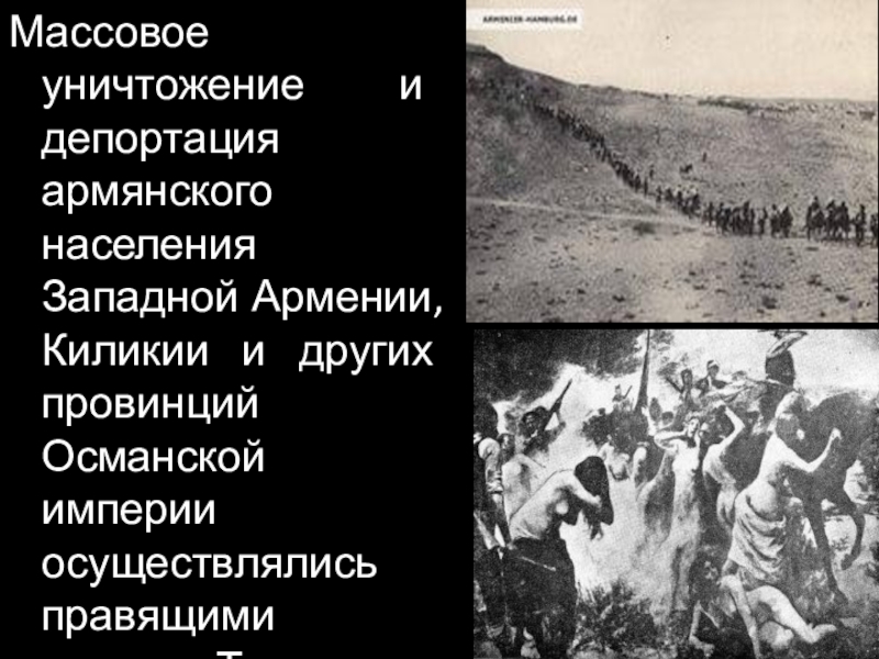 Слайд 5Массовое уничтожение и депортация армянского населения Западной Армении, Киликии и других