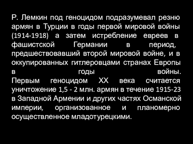 Слайд 4Р. Лемкин под геноцидом подразумевал резню армян в Турции в годы