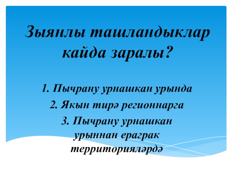 Зыянлы ташландыклар кайда заралы?1. Пычрану урнашкан урында 2. Якын тирә регионнарга 3. Пычрану урнашкан урыннан ераграк территорияләрдә