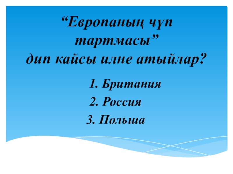 “Европаның чүп тартмасы” дип кайсы илне атыйлар?   1. Британия2. Россия 3. Польша