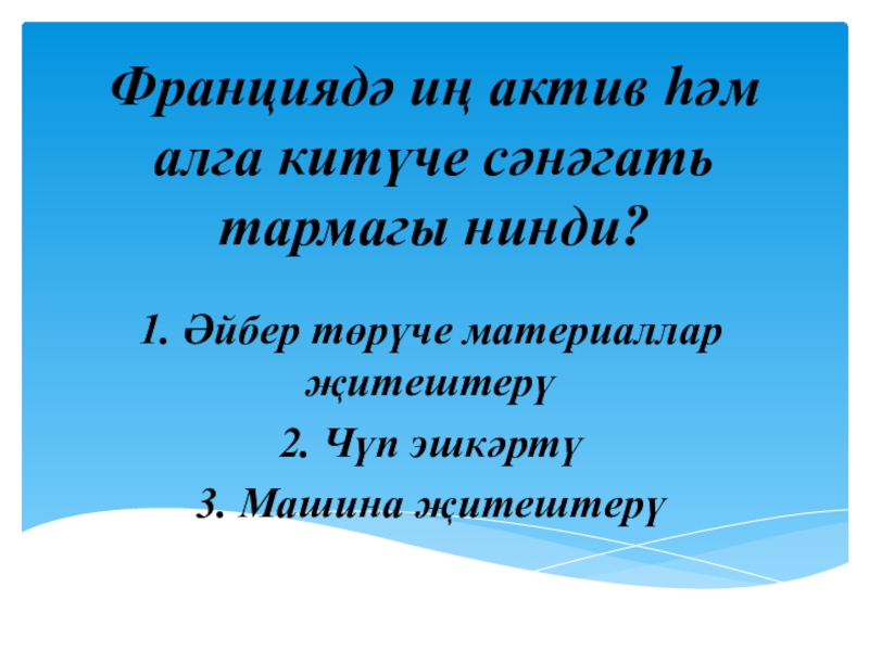 Слайд 6Франциядә иң актив һәм алга китүче сәнәгать тармагы нинди?