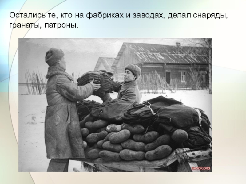 Слайд 5Остались те, кто на фабриках и заводах, делал снаряды,