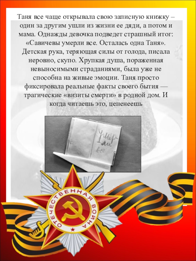 Слайд 43Таня так и не узнала, что не все Савичевы погибли, их