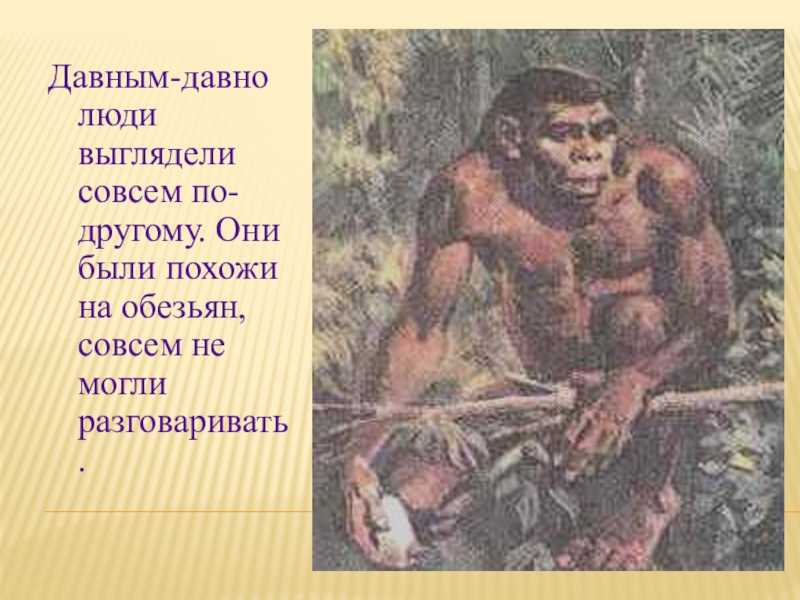 Давным-давно люди выглядели совсем по- другому. Они были похожи на обезьян, совсем не могли разговаривать.