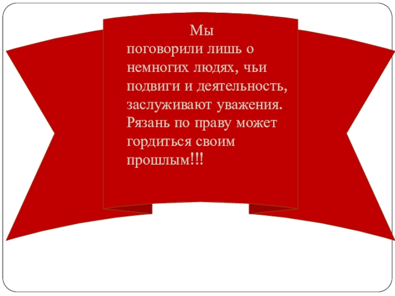 лишь о немногих людях, чьи подвиги и деятельность, заслуживают уважения. Рязань по праву может гордиться своим прошлым!!!