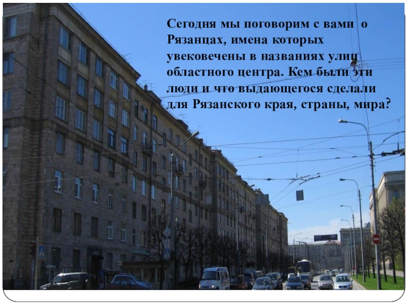 Слайд 2Сегодня мы поговорим с вами о Рязанцах, имена которых увековечены в