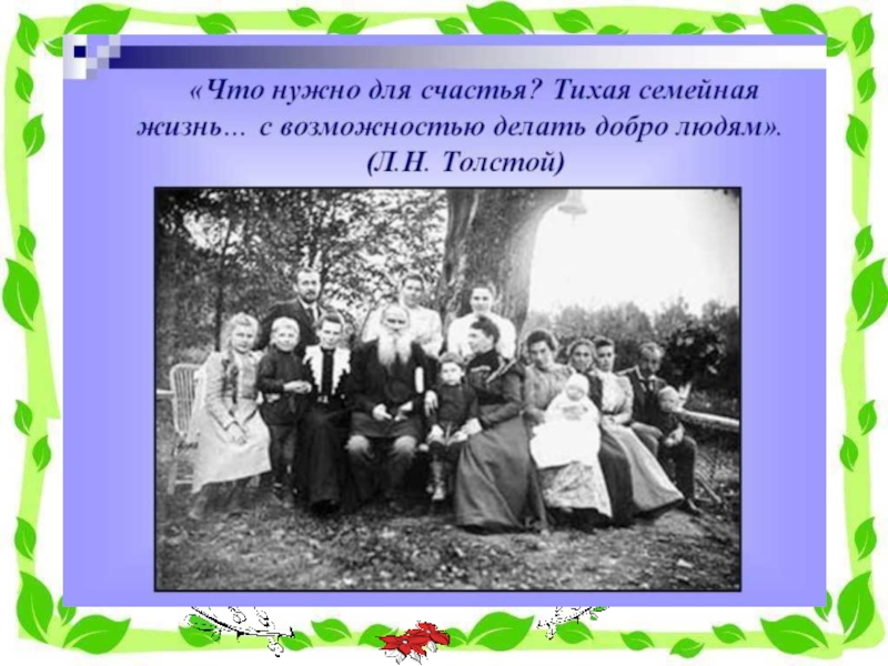 Семья -  группа людей, состоящая из родителей, детей, внуков и ближних
