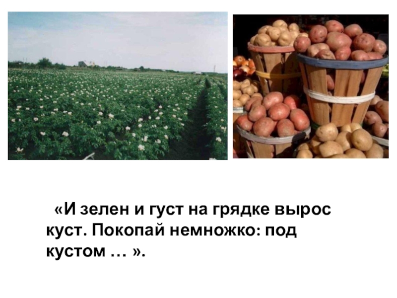 Слайд 6  «И зелен и густ на грядке вырос куст. Покопай немножко: под
