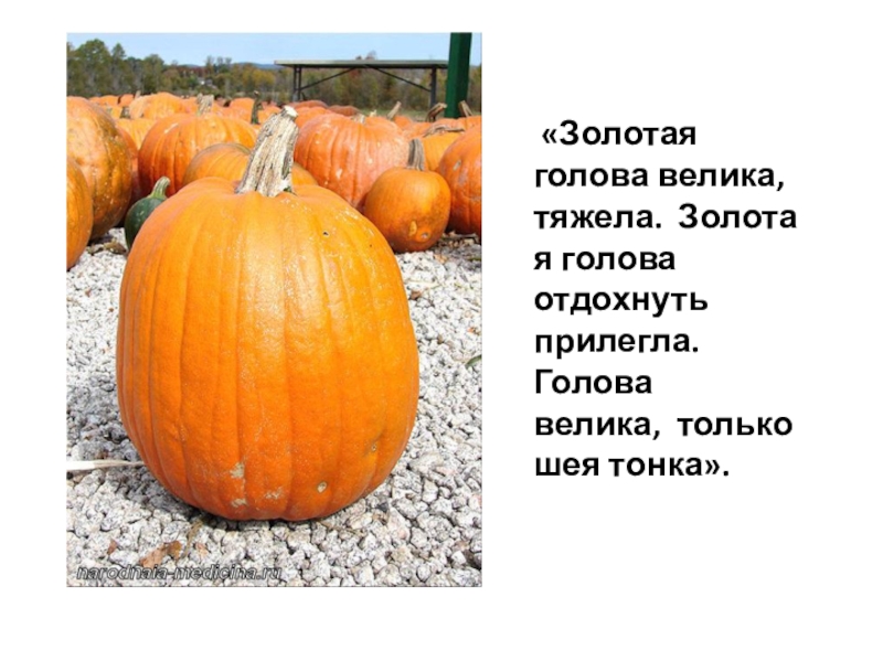 Слайд 9 «Золотая голова велика, тяжела.  Золотая голова отдохнуть прилегла. Голова велика,  только шея тонка».