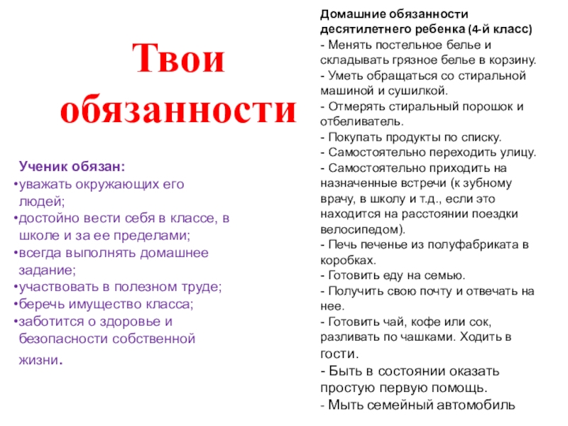 Домашние обязанности десятилетнего ребенка (4-й класс)