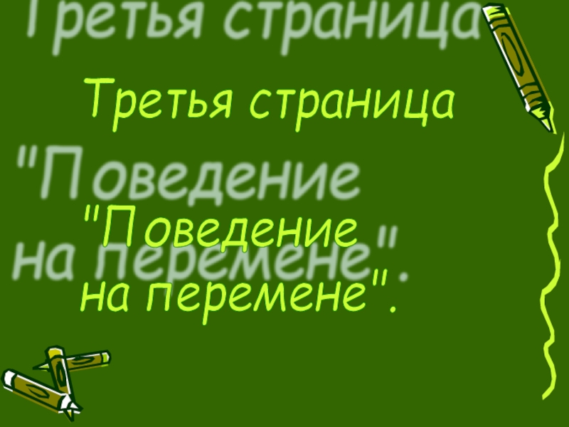 Слайд 6Третья страница "Поведение на перемене".
