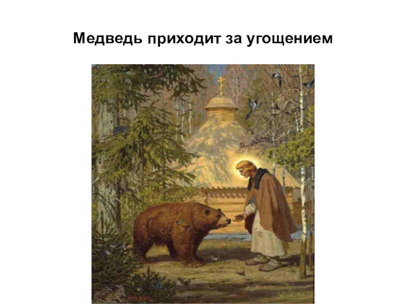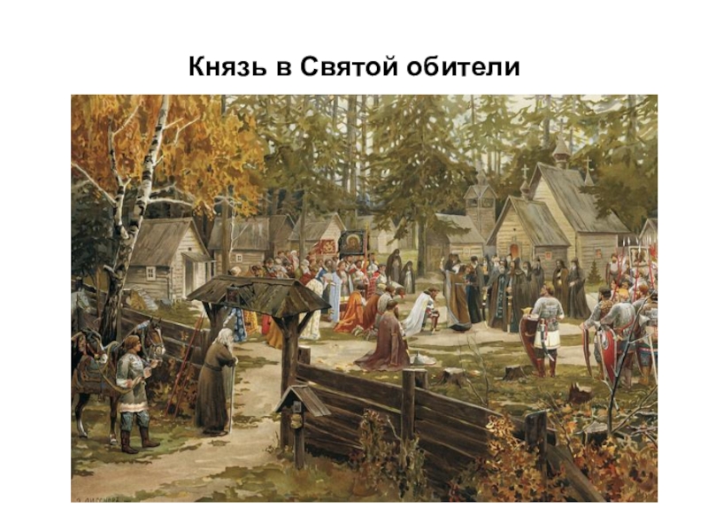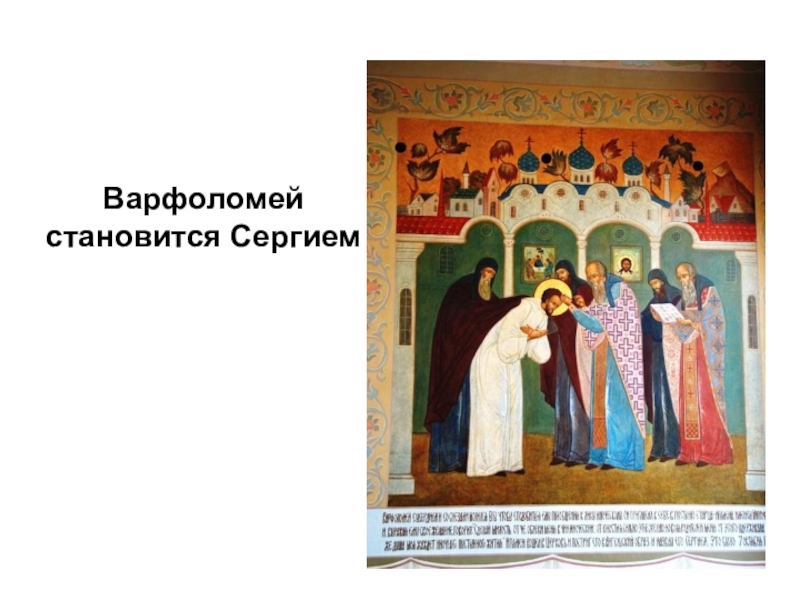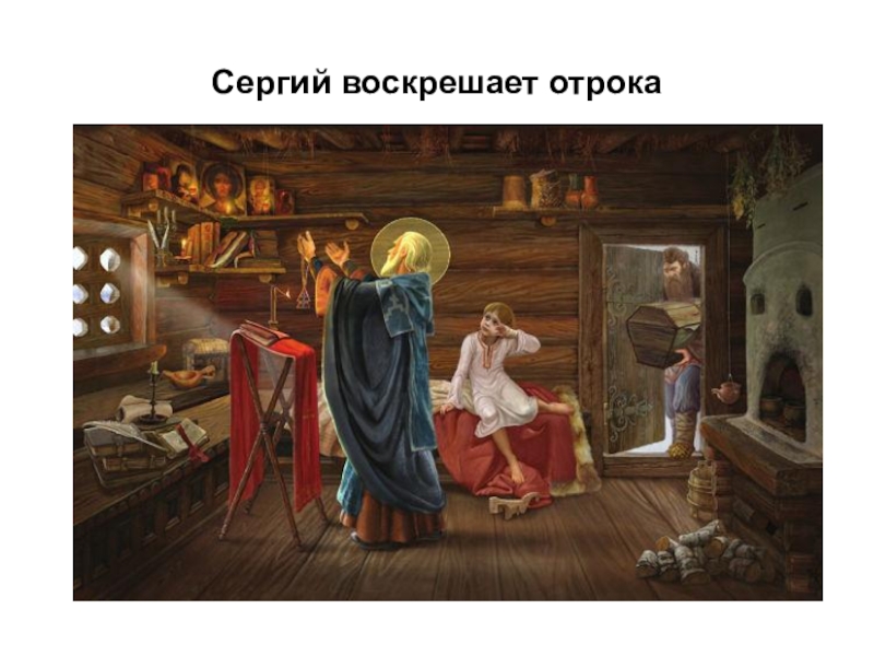 Слайд 34Преподобный Сергий молится в час битвы Куликовской