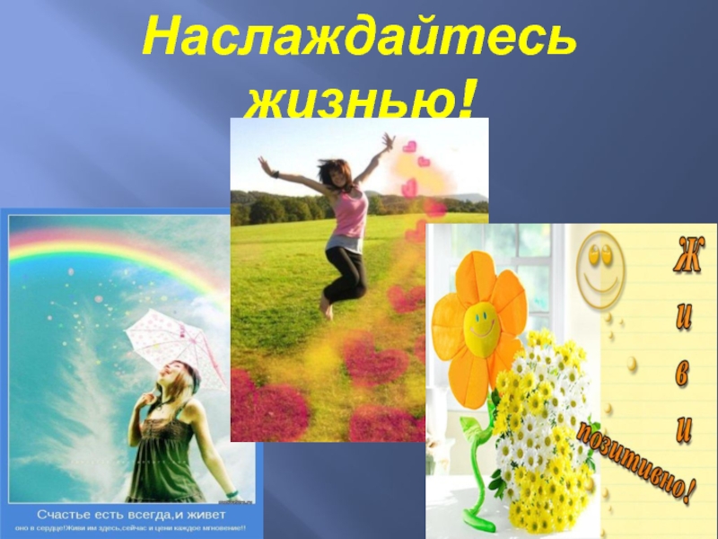 Старайся, чтобы в Вашей жизни было больше положительных эмоций. Смотри проще на проблемы и трудности. Наслаждайтесь жизнью!
