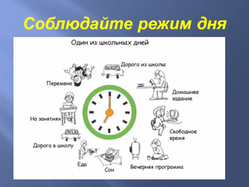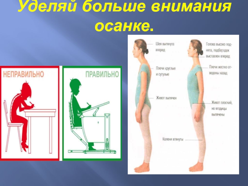 Правила о здоровом образе жизни. Чаще ходи пешком: ходьба активизирует кровообращение. Уделяй больше внимания осанке.Соблюдайте режим дня. Соблюдай