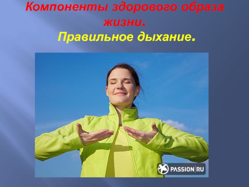 Слайд 10Компоненты здорового образа жизни. Правильное дыхание.
