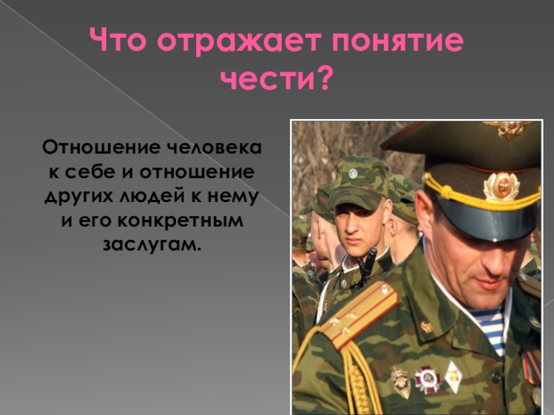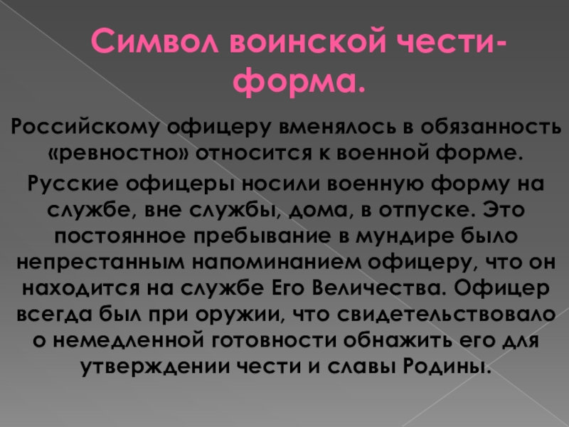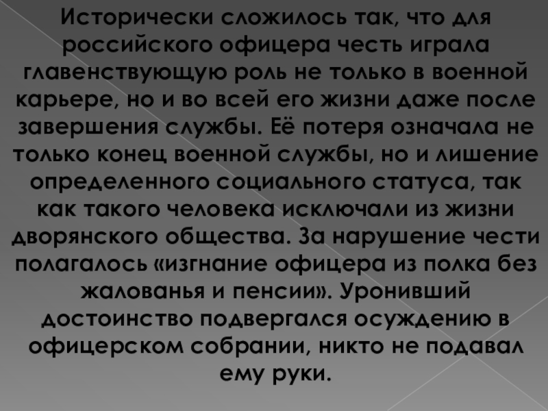 Слайд 28Исторически сложилось так, что для российского офицера честь играла главенствующую роль