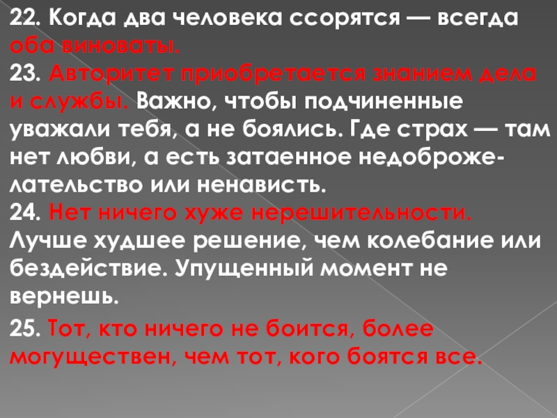 25. Тот, кто ничего не боится, более могуществен, чем тот, кого боятся все.