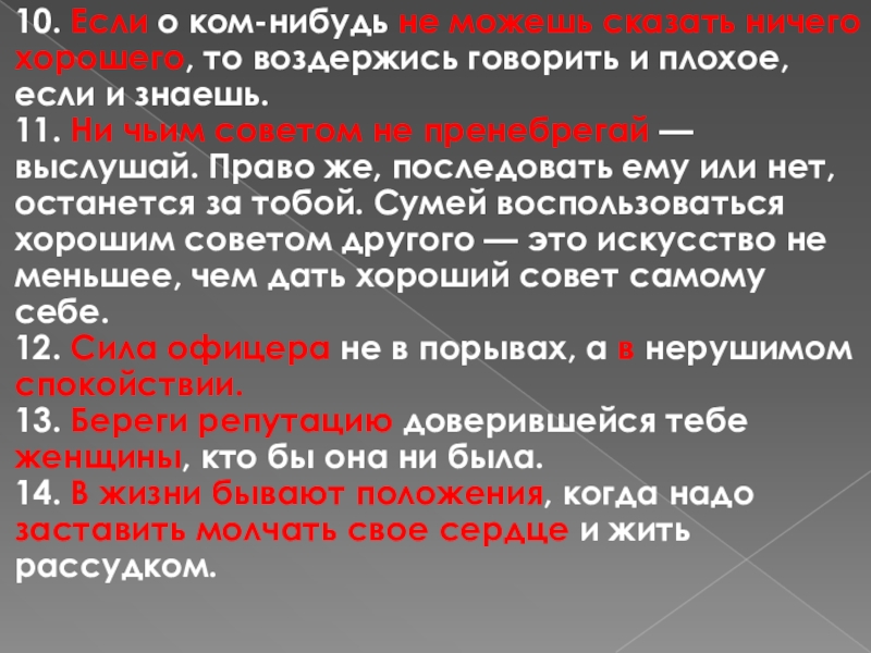 Слайд 3110. Если о ком-нибудь не можешь сказать ничего хорошего, то воздержись