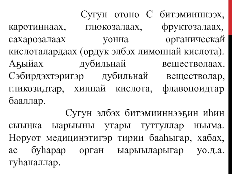 Слайд 8 Сугун отоно С битэмииннээх, каротиннаах,