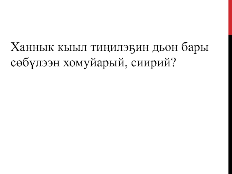 Слайд 17Ханнык кыыл тиңилэҕин дьон бары сөбүлээн хомуйарый, сиирий?