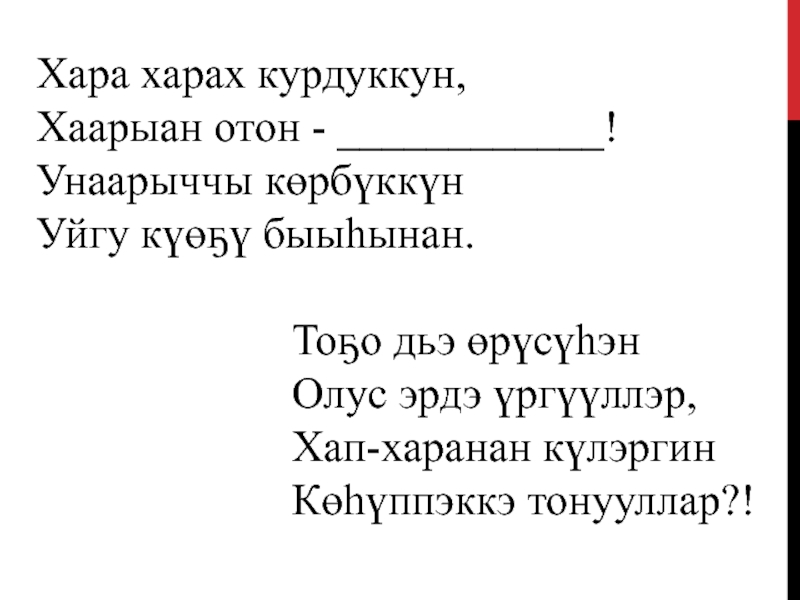 Слайд 2Харачаан моонньоҕон хараарыан иннигэр