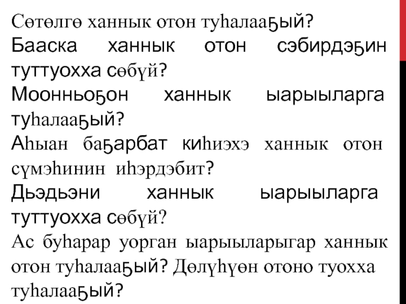 Слайд 30Сөтөлгө ханнык отон туһалааҕый?