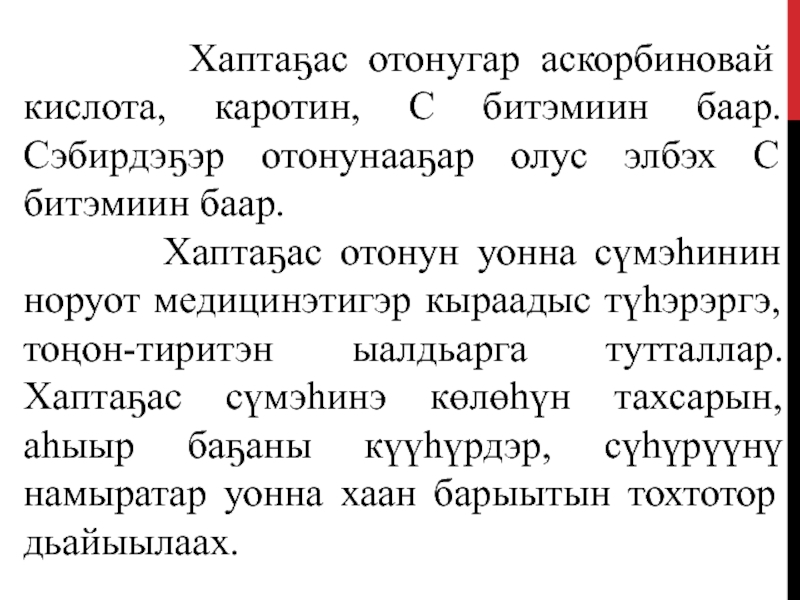 Слайд 5 Хаптаҕас отонугар аскорбиновай кислота, каротин, С битэмиин