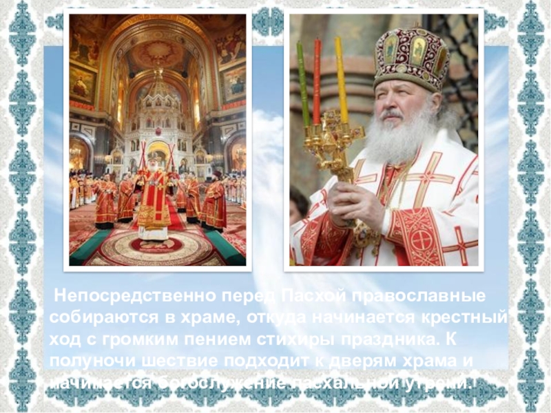 Слайд 12 Непосредственно перед Пасхой православные собираются в храме, откуда начинается крестный