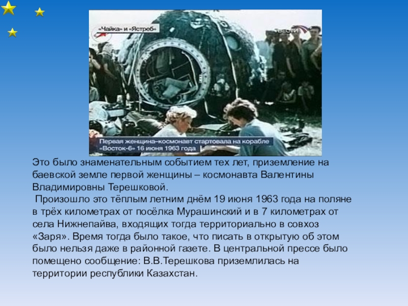 Спускаемый аппарат «Восток-6» благополучно приземлился