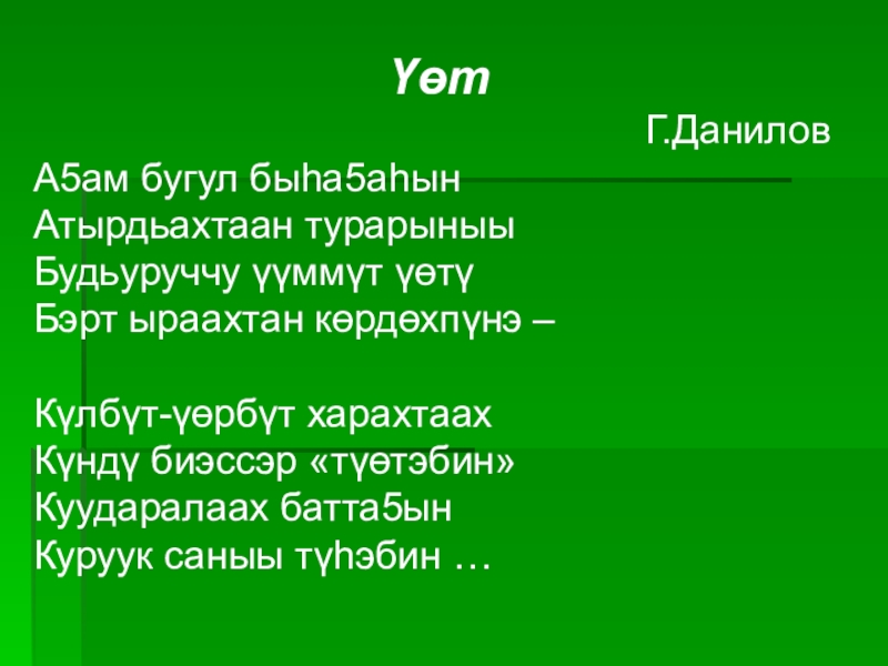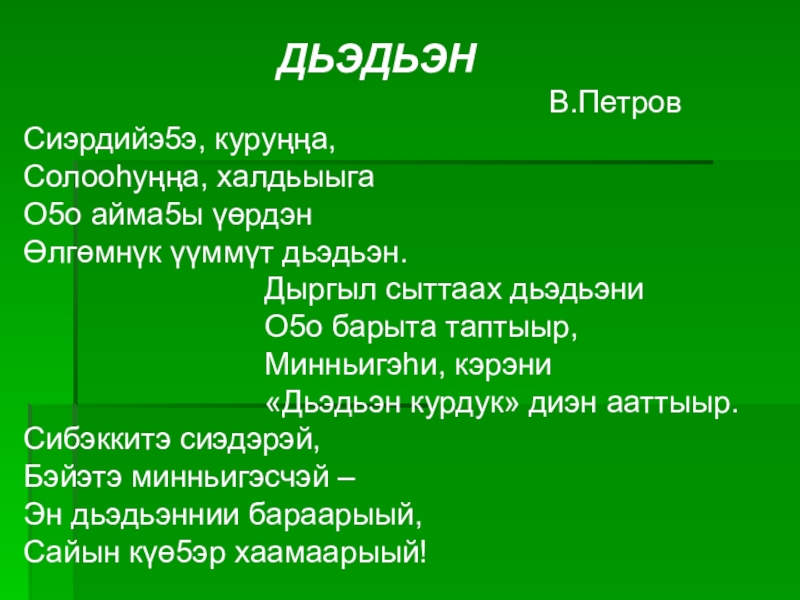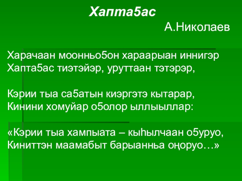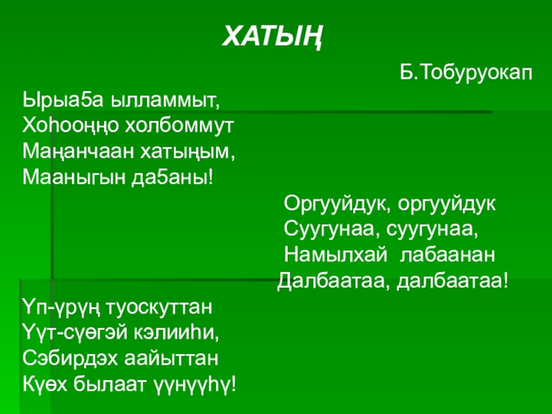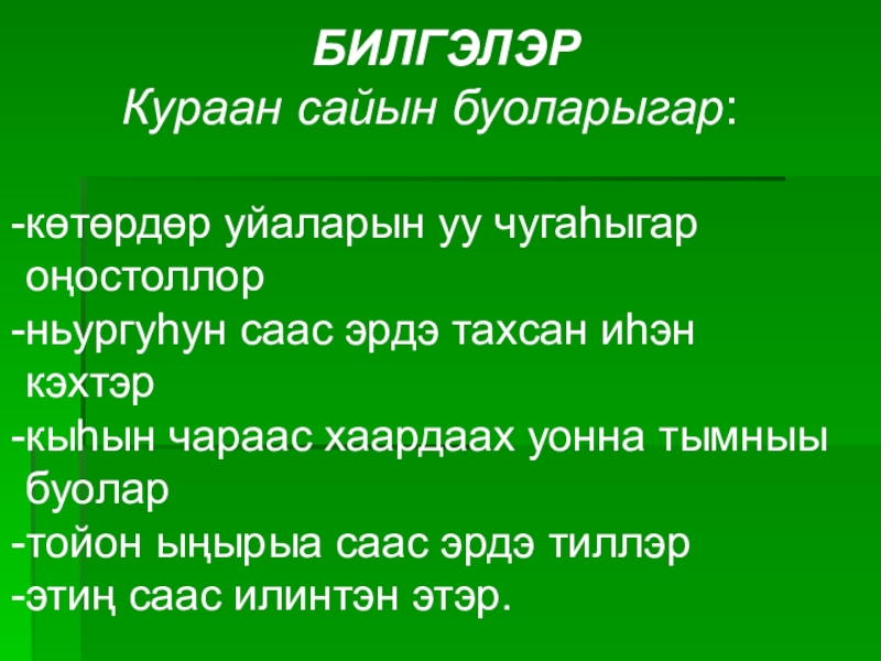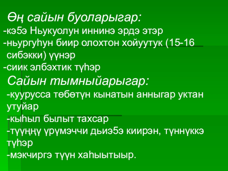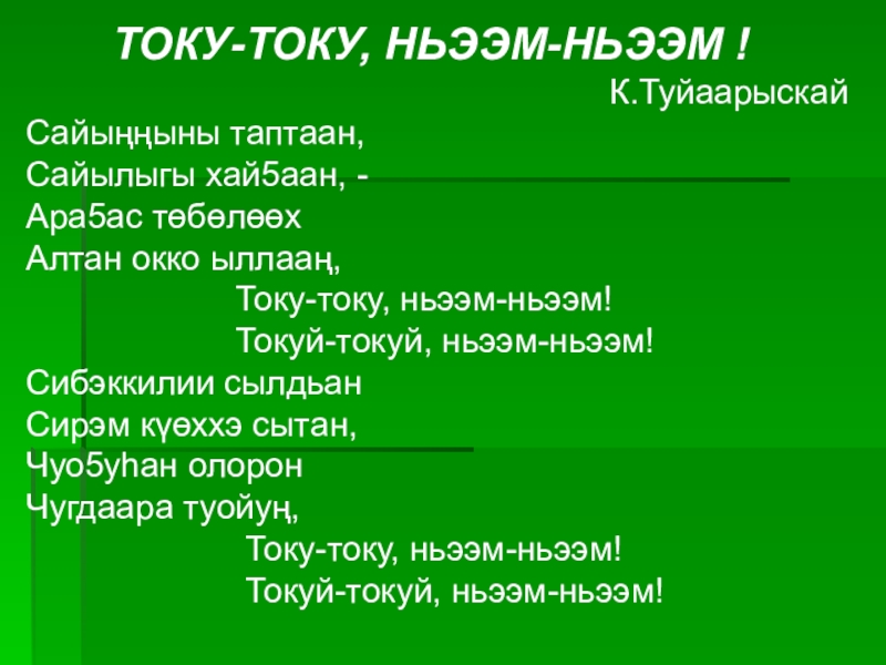 дыргыйан, тыынарга салгына чэбдигин, хаамарга үктэлэ сымна5аһын!