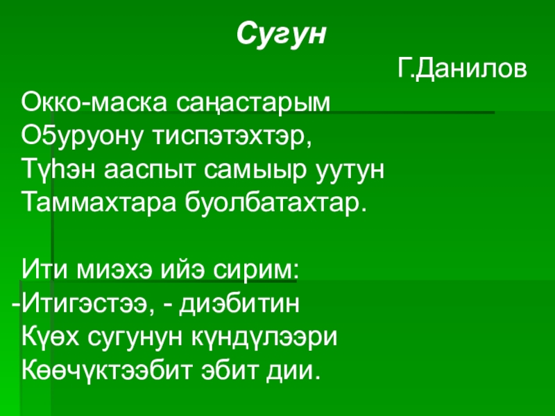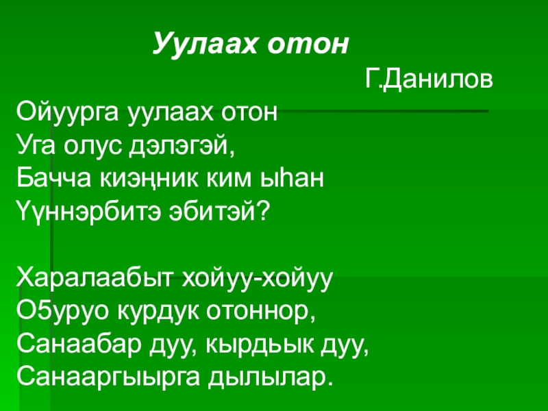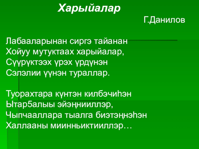 Слайд 34 Сайыңңы үтүө күн ойуур тыа ото-маһа ситэн, сыта-сымара