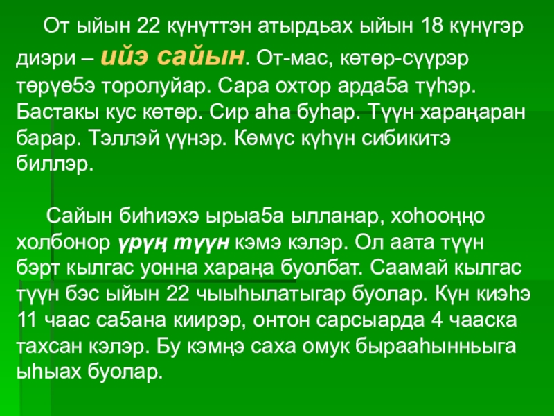 Слайд 3 От ыйын 22 күнүттэн атырдьах ыйын 18 күнүгэр диэри