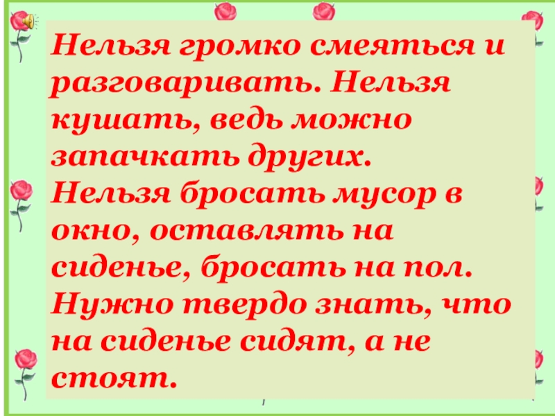 Нельзя громко смеяться и разговаривать. Нельзя кушать, ведь можно