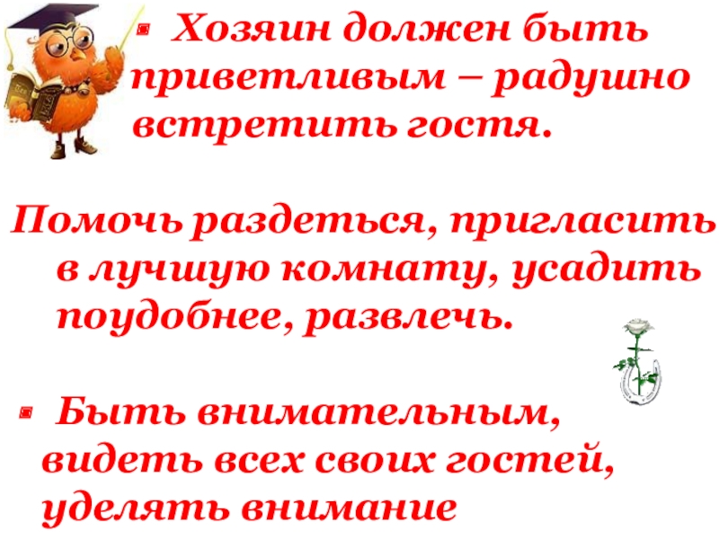 Помочь раздеться, пригласить в лучшую комнату, усадить поудобнее, развлечь.
