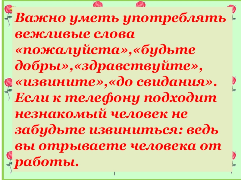 Важно уметь употреблять вежливые слова «пожалуйста»,«будьте