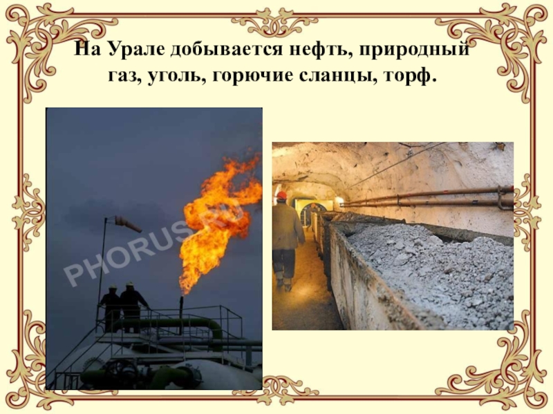 Слайд 14На Урале добывается нефть, природный газ, уголь, горючие сланцы, торф.