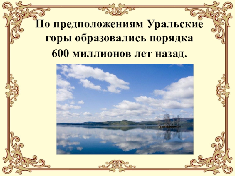 Слайд 6По предположениям Уральские горы образовались порядка 600 миллионов лет назад.