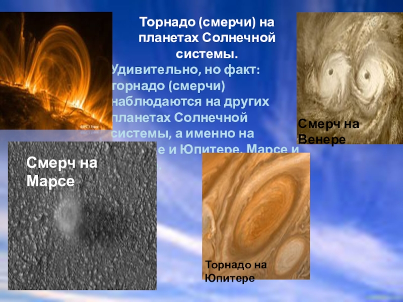 Слайд 12Торнадо (смерчи) на планетах Солнечной системы.