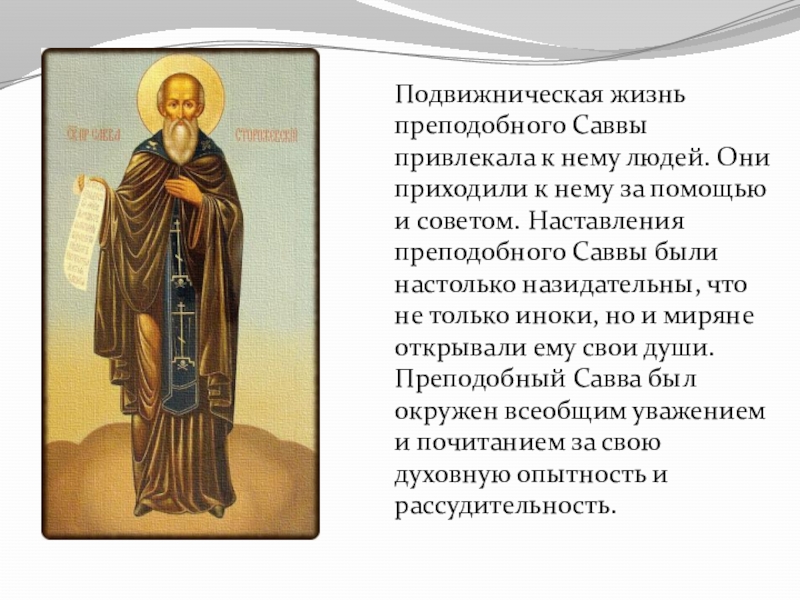 Слайд 4Подвижническая жизнь преподобного Саввы привлекала к нему людей. Они приходили к