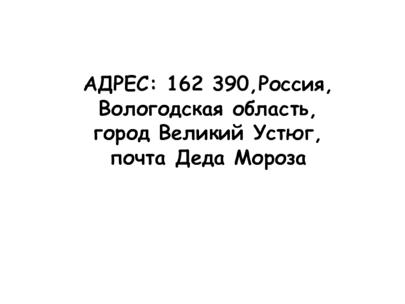 АДРЕС: 162 390,Россия, Вологодская область,город Великий Устюг, почта Деда Мороза