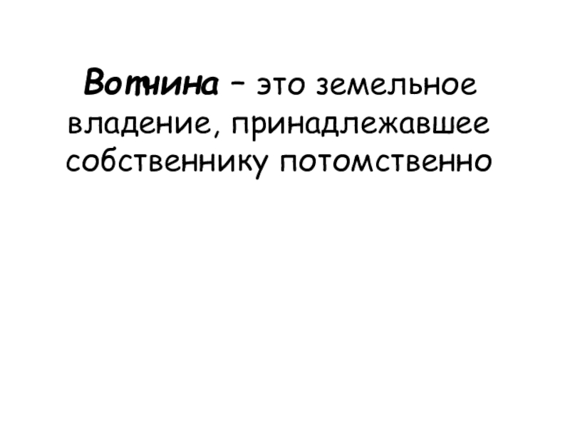 Слайд 5Вотчина – это земельное владение, принадлежавшее собственнику потомственно